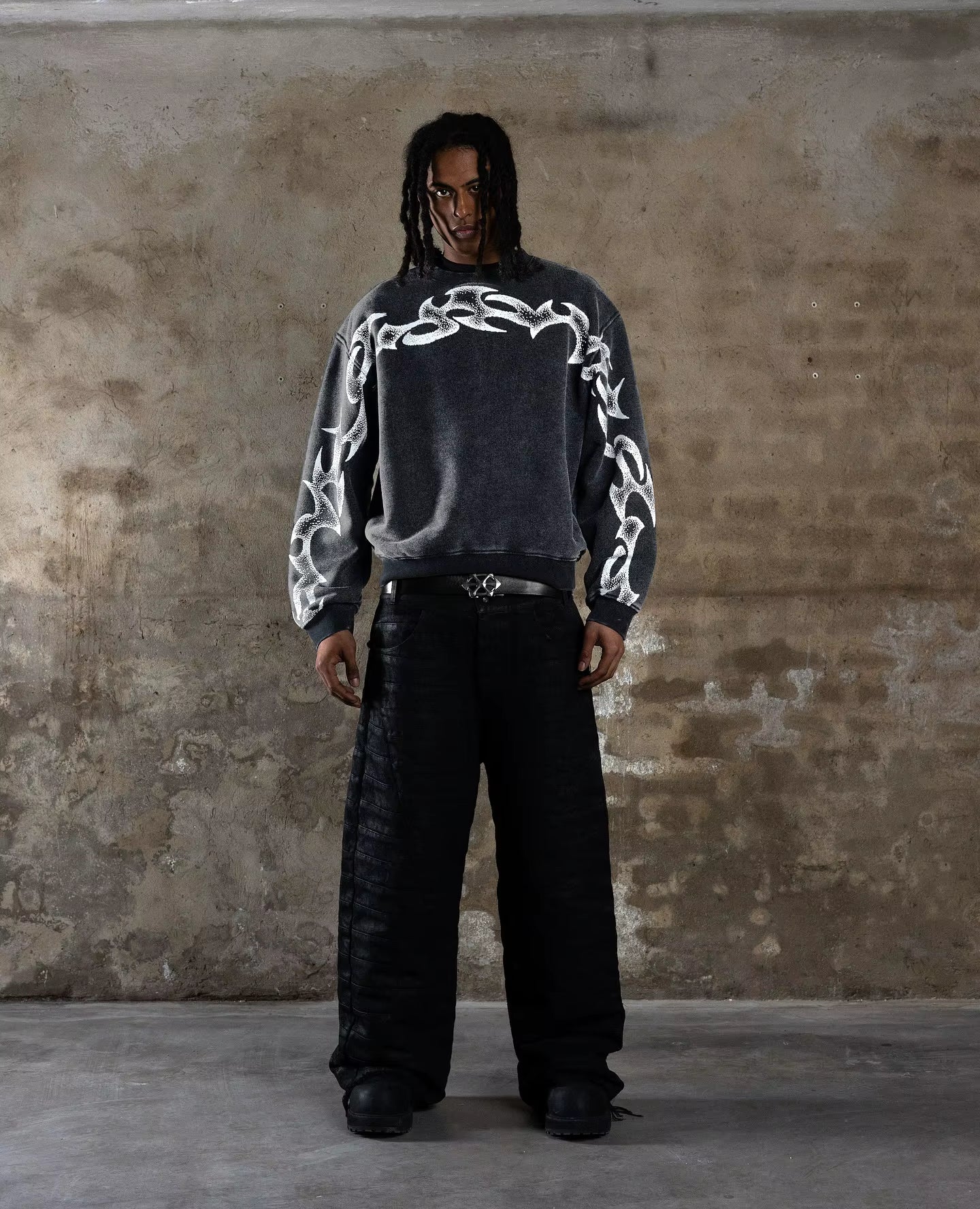 The Taintless Thorns Fleece brings heat to cold-weather layers—blending soft, heavy-pile comfort with aggressive high-street edge. Designed with a plush textured body and bold thorn graphics running down each sleeve, it commands attention without sacrificing warmth or comfort.